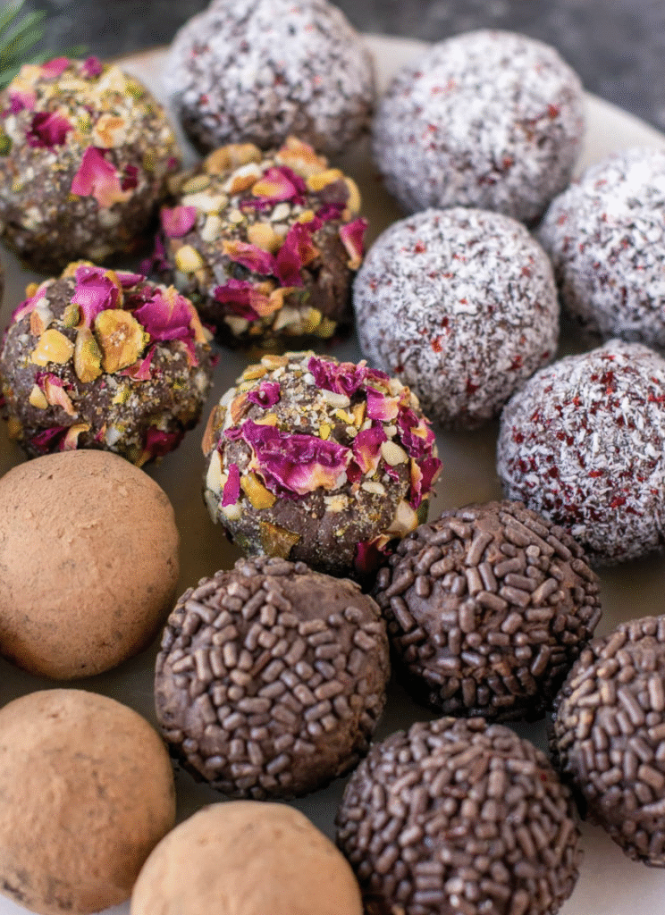 These truffles are infused with chai spices like cardamom and cinnamon. Pair them with a cup of tea for a cozy Christmas treat.