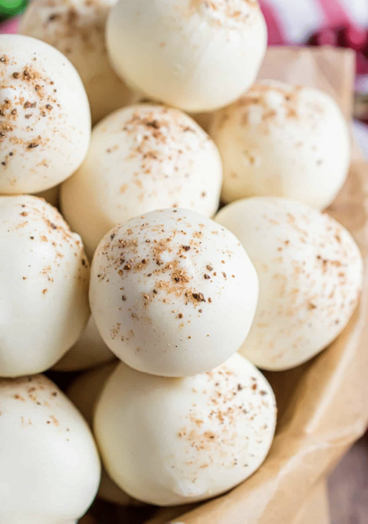 You can never go wrong with sweet, festive bites like eggnog truffles during the holidays.