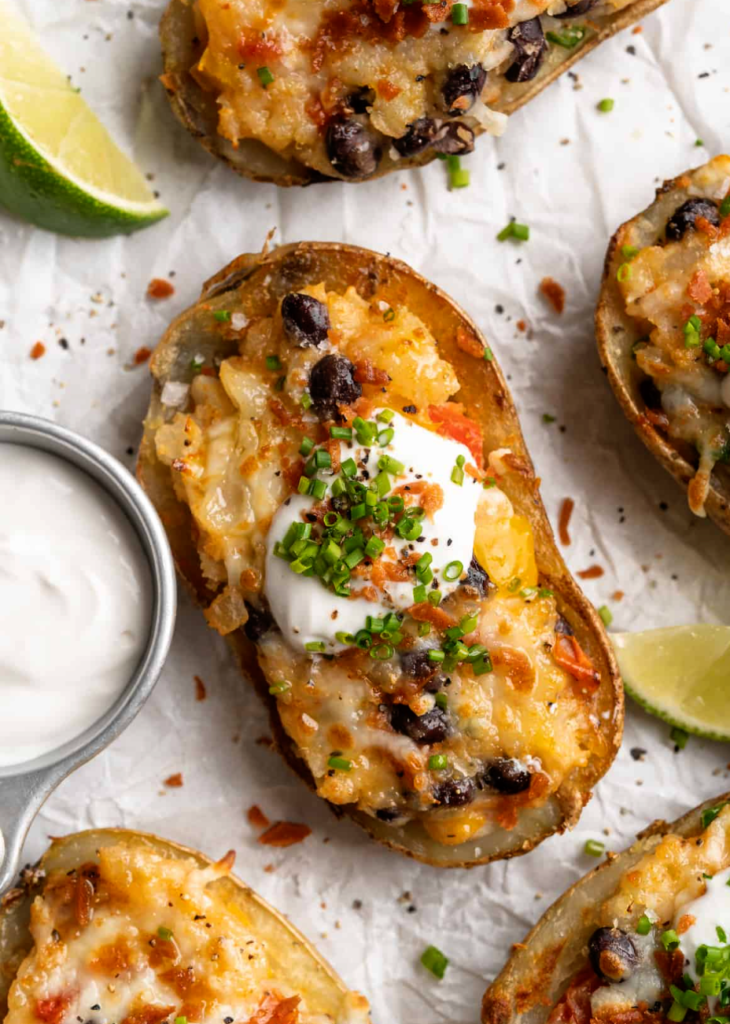 Have you tried this vegetarian version of loaded potato skins? If not, then you must try this delicious appetizer by Jessica from Jessica in the Kicthen. The ingredients you need are cheese, black beans, vegan sour cream, cheese and veggies.