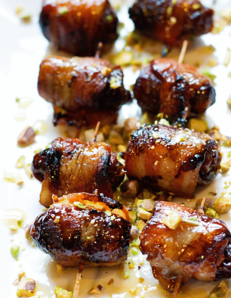 These bacon-wrapped dates with maple glaze and pistachios are the perfect cozy appetizer for fall gatherings or dinner parties. The salty bacon balances the sweetness of the dates, while the pistachios add the perfect crunch. Sweet, savory, and decadent, they’re a must-try for your fall entertaining menu!