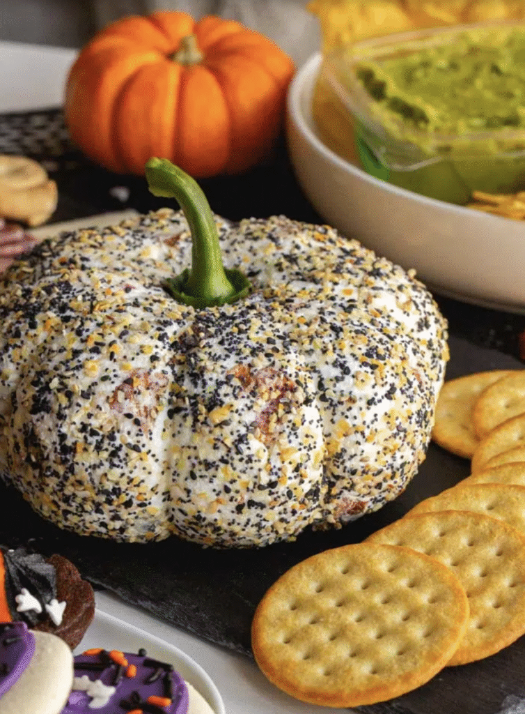 This pumpkin-shaped cheese ball is a festive and flavorful appetizer for any gathering.