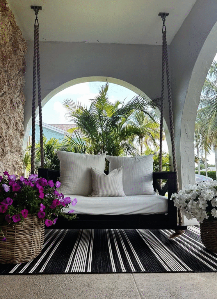 To add a relaxing vibe to your space, consider using a hanging swing chair or hammock.