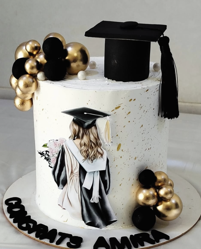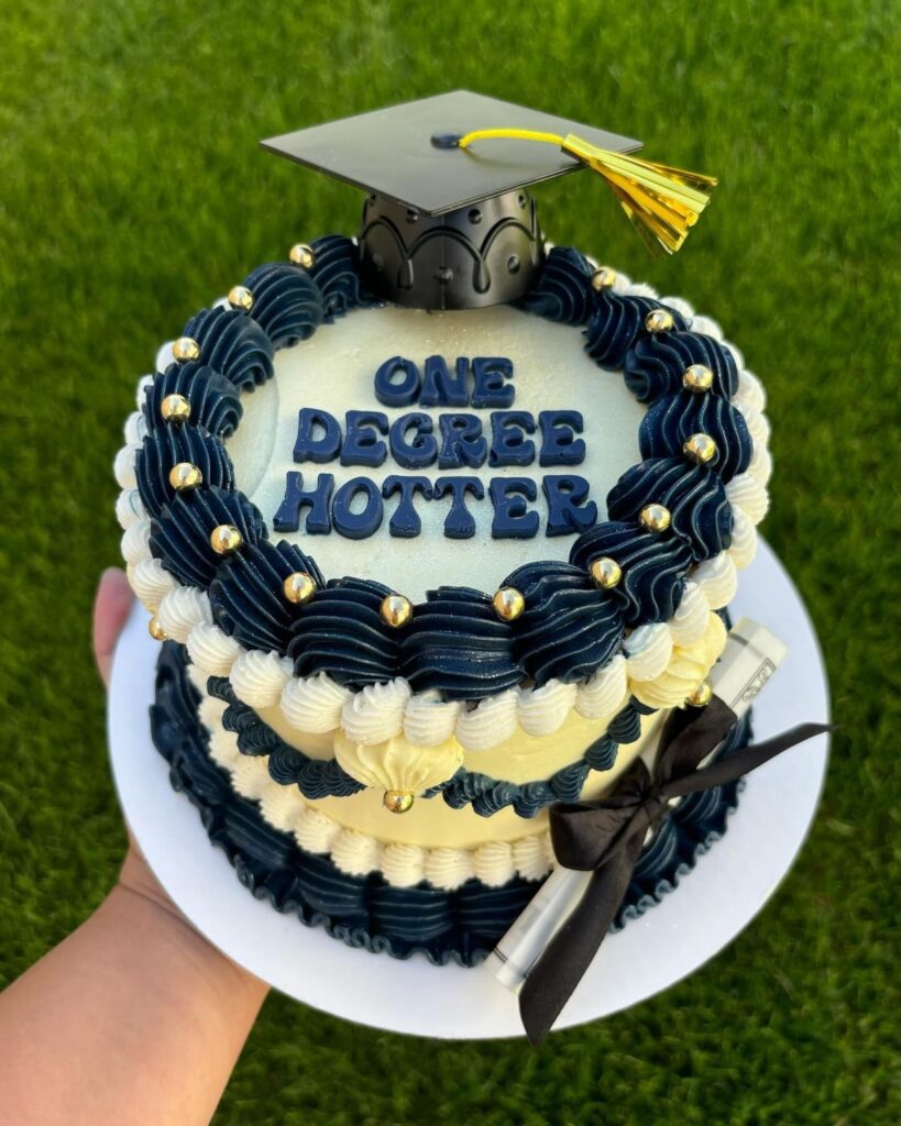 If you’re googling graduation cake ideas, you probably want something pretty, fun, and grown-up, not cheesy or covered in giant plastic caps.