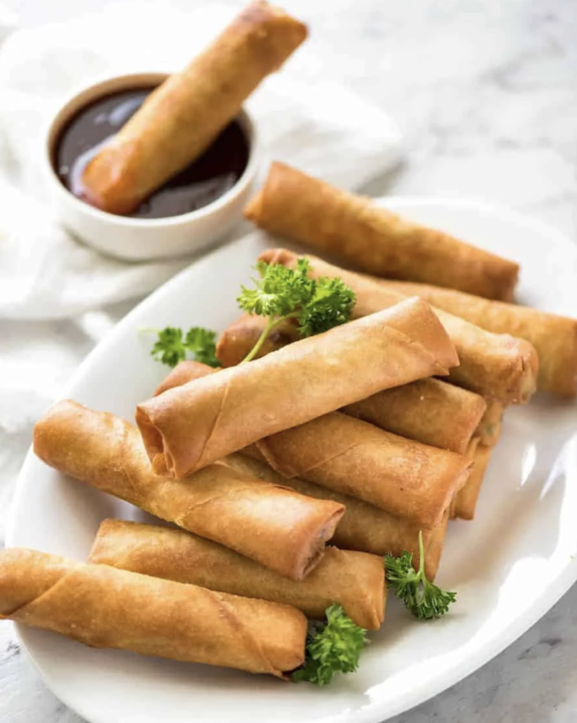 You can use veggie spring rolls, chicken, or shrimp to give everyone options.