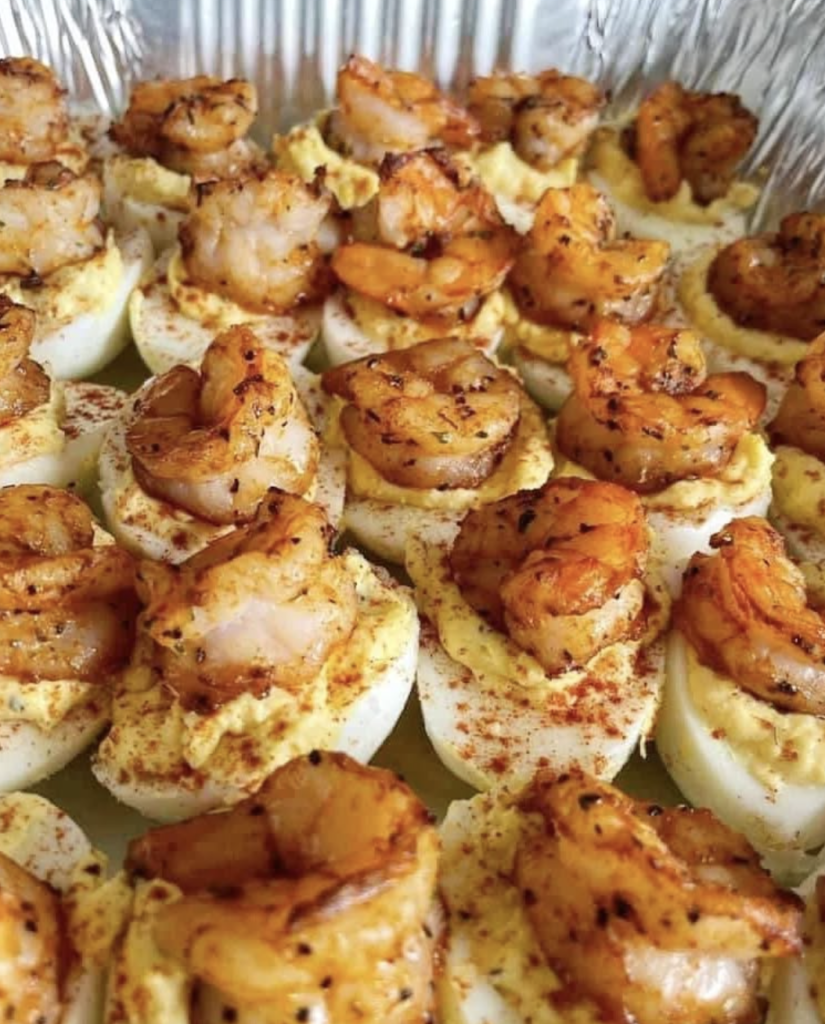 If you want something that feels a little fancy but is still easy to serve, devil eggs topped with grilled shrimp are a great choice.