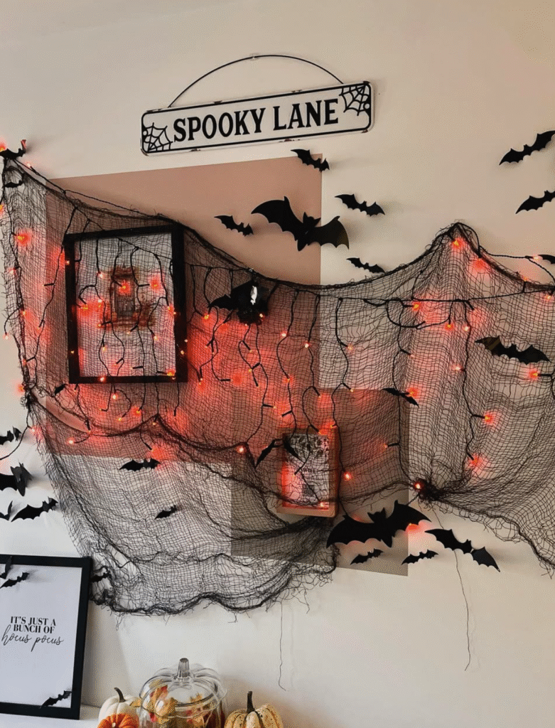 Drape it over bookshelves, headboards, or dressers for subtle spooky texture.