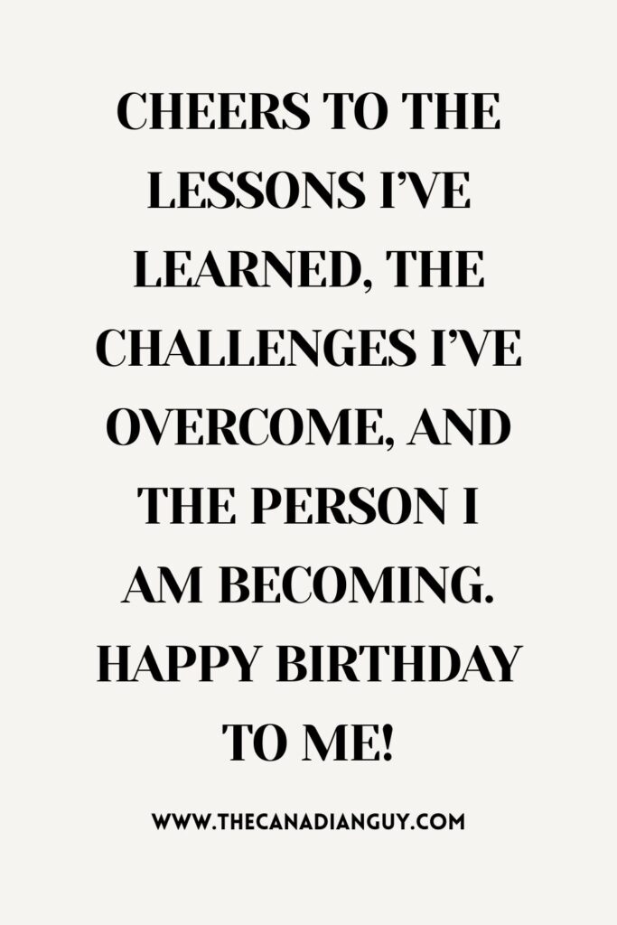 6. “Cheers to the lessons I’ve learned, the challenges I’ve overcome, and the person I am becoming. Happy Birthday to me!”