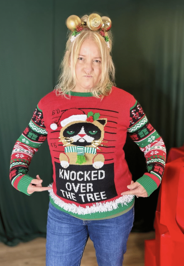 Below, I’ve shared 7 easy steps to turn any plain sweater into a festive, and 15 show-stopping DIY ugly Christmas sweater inspirations that you’ll love wearing this holiday season.
