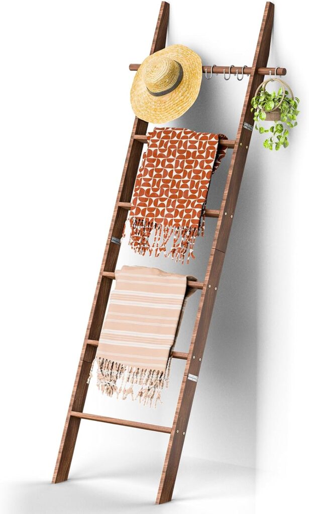 For me, choosing the right size is everything. You want something that fits your space without overcrowding it. I personally love using an old wooden ladder because it gives such a cozy, rustic vibe, but you can also go for a new one.