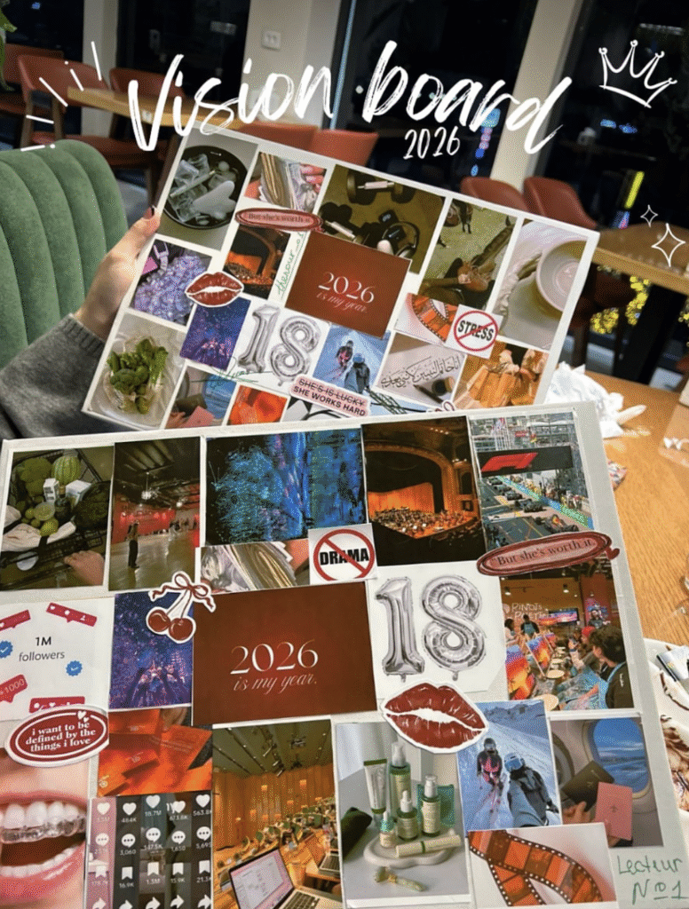 A vision board is a creative mix of images, words, and affirmations that reflect your dreams, goals, and intentions, basically a visual roadmap for your best life.