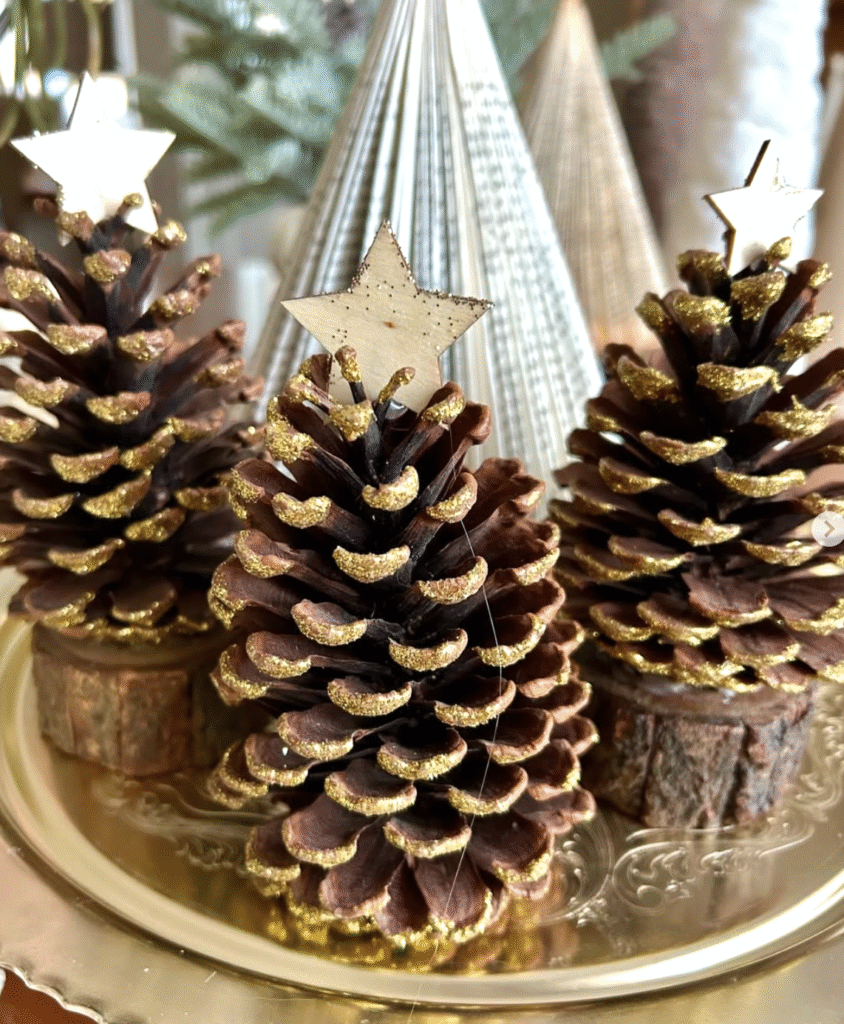 Try these super this cute and unique Christmas pinecone tree. Arrange them in a star or cone shape and decorate with paint, glitter, or other embellishments.