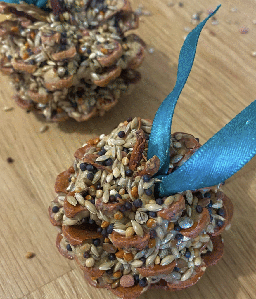 Create bird feeders by coating pinecones with peanut butter and rolling them in birdseed. Hang them outdoors for a functional and eco-friendly craft.