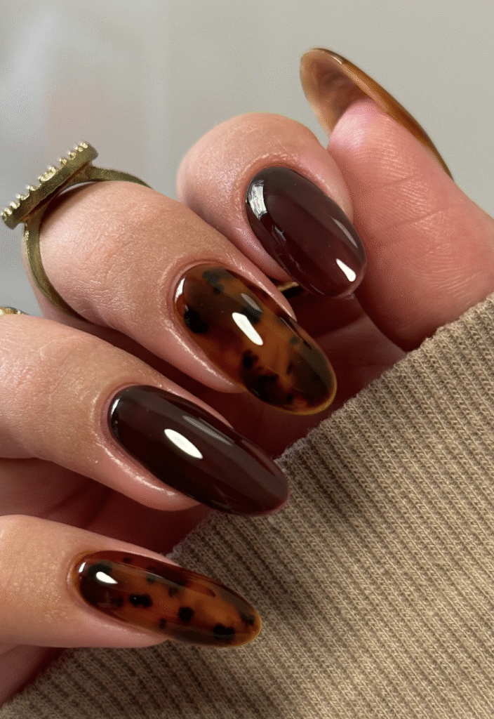 More into deep, bold tones for the season? There are tons of options to try. Think rich espresso browns, pumpkin spice French tips, deep rust shades, or a classic caramel set. They’re way more fun than sticking to plain polish week after week.