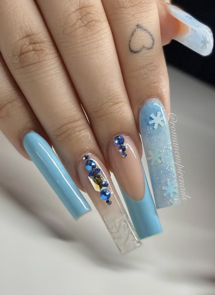 Shimmering Blue Nail With Snowflakes