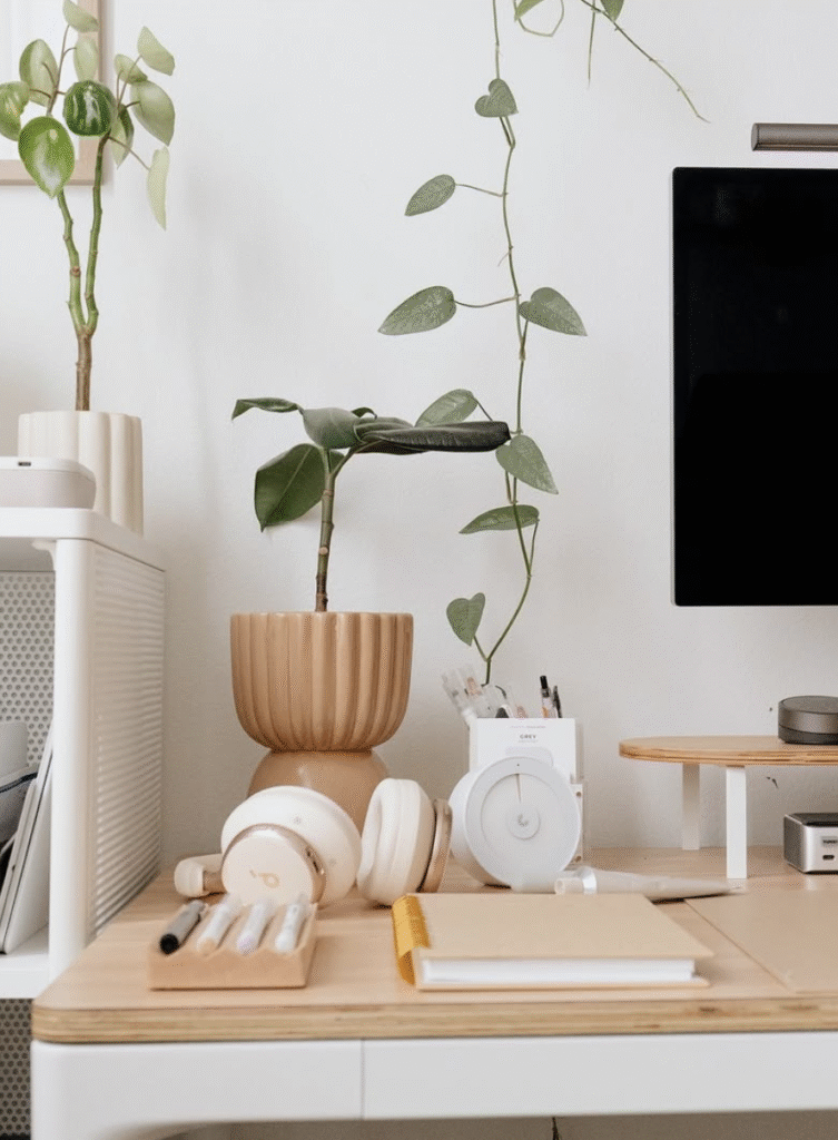 Adding a plant or two not only brightens up your workspace but also gives you a little mood boost during the day.